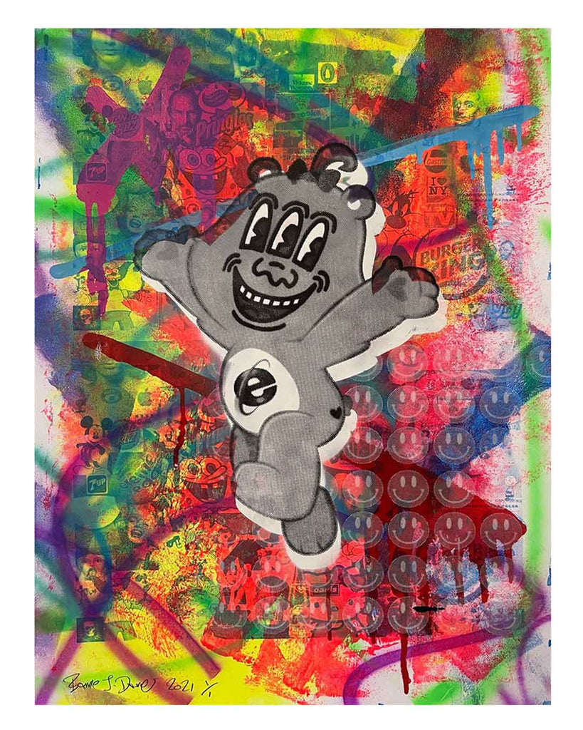 Crazy Wrong Bear Print by Barrie J Davies, unframed Silkscreen print on paper (hand finished) edition of 1/1 - A2 size 42cm x 59.4cm.