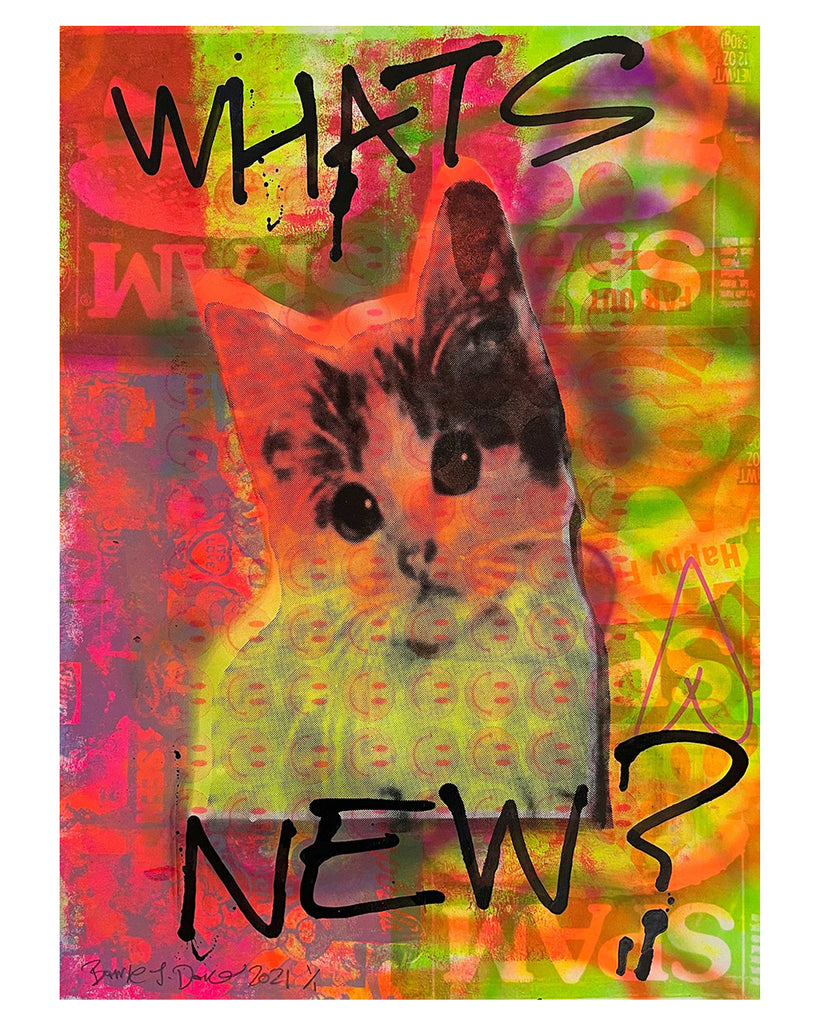 Whats New Kitschy Cat Print by Barrie J Davies, unframed Silkscreen print on paper (hand finished) edition of 1/1 - A2 size 42cm x 59.4cm.