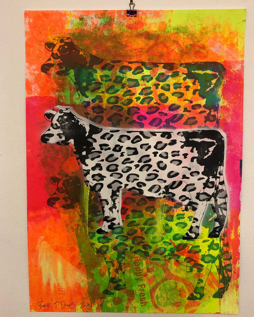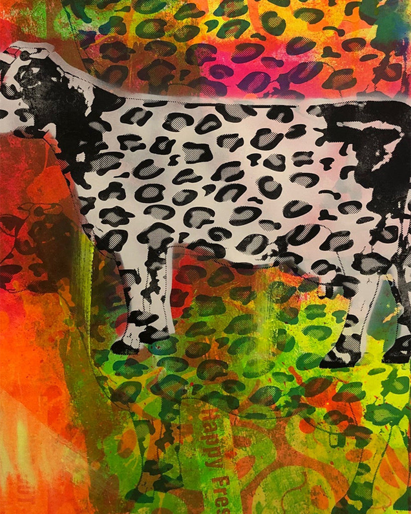 Crazy Cow Pop Art Print by Barrie J Davies, unframed Silkscreen print on paper (hand finished) edition of 1/1 - A2 size 42cm x 59.4cm.