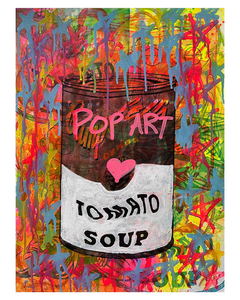 Pop Art Soup Print by Barrie J Davies, Unframed Silkscreen print on paper (hand finished), edition of 1/1 A2 size 42cm x 59cm.
