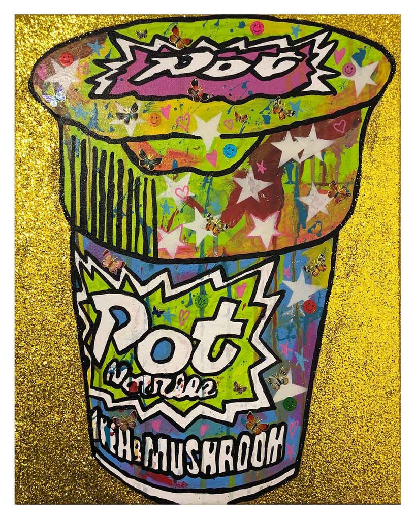 Pop My Noodle Painting by Barrie J Davies, mixed media on canvas, unframed, 40cm x 49cm.